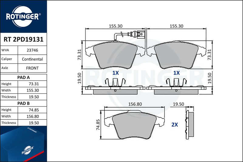 Blue Print fékbetétkészlet tárcsafék 156mm,155mm,75mm,73mm,elsőtengely