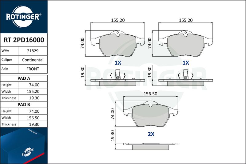Blue Print fékbetétkészlet tárcsafék 155mm,156mm,155,19mm,156,31mm,74mm